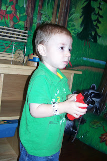Okay, okay, I know that I have been a little picture happy, but I cannot help that my boys are absolutely adorable. We went to the Great Wolf Lodge April 16-18th to have a short family vacation and boy did we ever need one. We went to a presentation where they try and sell you stuff, and got a 3 day 2 night stay at the GWL. We thought that was a great deal and both Matt and I are good at telling them NOPE not right now. The picture above was a gift shop there at the lodge. Jared loves stuffed animals and is so cute when he gives them hugs. I couldn't capture a hug on camera though as he is so quick.